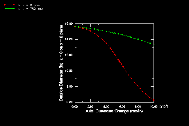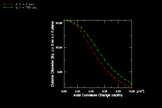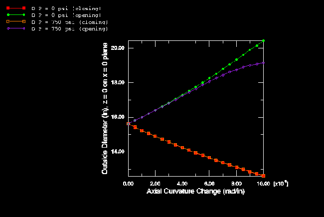 straight, elastic-plastic pipe. Figure 10. Moment-curvature—initially curved, elastic pipe (shell model). Figure 11. Deformation of section—initially curved, elastic pipe (shell