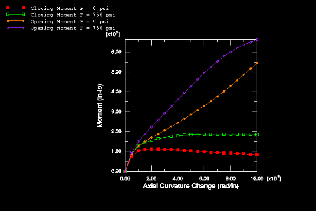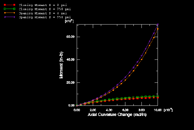shows the variation of moment with curvature of the pipe. The unstable behavior