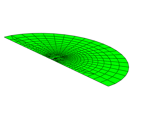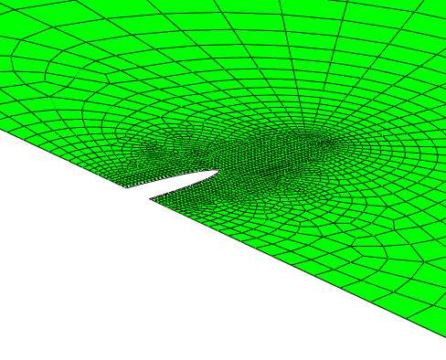 The domain of the problem considered in this example is a 1 m thick circular slice of oil-bearing rock with a small initial crack modeled. The domain has a diameter of 160 m.