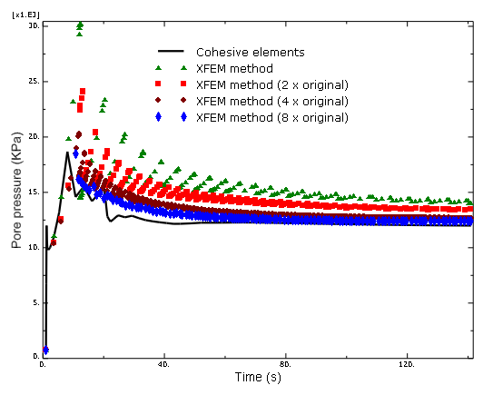 A two-step analysis is performed, and crack propagation is simulated. A geostatic step is performed where equilibrium is achieved after applying the initial pore pressure to the formation and the initial in-situ stresses. The next step represents the hydraulic fracture stage where the main volume of fluid is being injected into the well. Flow at a rate of 1.0 × 10−3 m3 per second is injected in the target formation in the model, and the enriched elements adjacent to the wellbore are defined as initially open to permit entry of fluid. The duration of this stage is 140 seconds.
