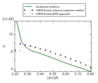 The material data for the bulk material properties in the enriched elements are GPa and = 0.3.