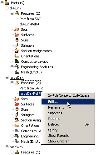 Using a reference point is often more convenient than using a point or node on the assembly because the same reference point can be used by a rigid body or coupling constraint. In the Part module you can use the Reference Point toolset to create one reference point on each part; additional reference points can be created in the Assembly module, Interaction module, and Load module. You can use the Model Tree to rename reference points with more descriptive feature names. Descriptive names allow you to more easily associate reference points and wires in a complex model, as shown in Figure 1. ![]() If you want to use different feature names and labels for a reference point on multiple instances of the same part, you must create the reference points in an assembly-related module. You can create a node on a mesh using the Edit Mesh toolset and then select the node to define an endpoint of an assembly-level wire; however, the node is not listed in the Model Tree and has no label in the viewport. For more information on creating and renaming reference points, see The Reference Point toolset. For more information on creating a node on a mesh, see Manipulating nodes. Each reference point or node that defines an endpoint of an assembly-level wire needs to be associated with the model geometry, even if they are created in the Part module. In many cases you will create a rigid body constraint or a coupling constraint (to distribute forces to an area instead of to a single point) between the reference point or node and a part instance. As a result, the motion of the wire endpoint will be constrained to the motion of the part instance. You create constraints in the Interaction module. For more information, see Understanding constraints. |