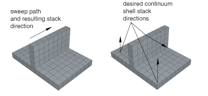 When you are generating elements that will be assigned to continuum shell elements, the elements in the mesh must be oriented consistently. For example, Figure 1 shows a swept mesh generated in the direction of the sweep path. The generated elements are stacked in the direction of the sweep path; however, if you plan to use continuum shell elements, the elements should be stacked through their thickness. ![]() You can use the Query toolset to determine which faces are designated as the bottom face and the top face and to look for inconsistent orientations between elements. For more information, see Obtaining general information about the model. In some cases, you can partition the model and change the direction of the sweep path to obtain the correct orientation. Alternatively, you can assign an orientation unrelated to the sweep path. For more information, see Applying a mesh stack orientation. |