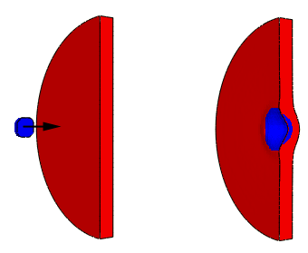 depicts an Eulerian model of a lead projectile impacting a brass plate. The