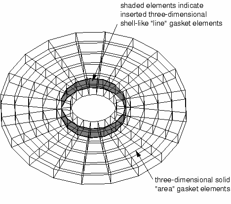 illustrates a gasket modeled as a solid layer with an embedded shell-like