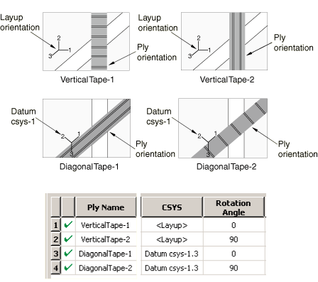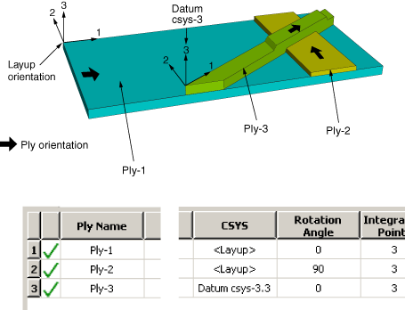 0°. The resulting ply orientation is along the 1-axis of Datum