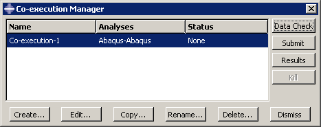 The Analyses column displays the type of analyses associated with the co-execution; for example, Abaqus-Abaqus.
