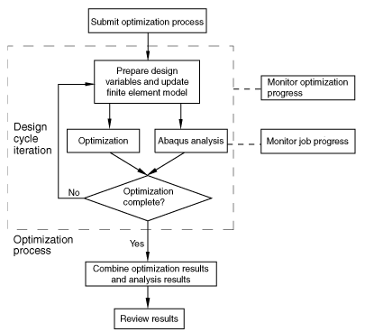 ![]() An optimization process reads an optimization task that you defined in the Optimization module and iteratively searches for an optimized solution based on the objective functions and constraints that you defined in the optimization task. Each iteration is called a design cycle. During each design cycle the optimization modifies the finite element model and an Abaqus analysis is performed on the modified model. The optimization process reads the results of the analysis and decides whether to end the optimization because either the solution is optimal or a specified stop condition has been reached or whether to continue the optimization and iterate on another design cycle. An optimization process generates optimization results and analysis results. You must combine the optimization results and analysis results into a single output database file to view the results of the optimization in the Visualization module, as described in Postprocessing an optimization. The Optimization module does not support the use of parts and assemblies in the Abaqus input file. When you run an optimization task, the Optimization module generates a flattened input file that does not use parts and assemblies, regardless of your Abaqus model attributes. An optimization process appears in the Analysis section of the Model Tree and contains the Abaqus jobs that were run during the optimization, as shown in Figure 2. ![]() You can check the validity of your optimization process; however, the validation does not check your Abaqus model. You should run a complete analysis of your model and make sure that it runs to completion before you attempt to run an optimization process. |