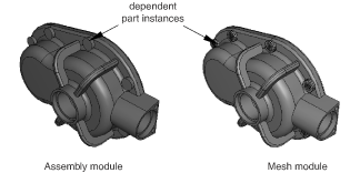 For example, Figure 1 illustrates an assembly of independent and dependent part instances. The pump housing is an independent part instance, and the eight bolts are dependent part instances. The figure on the left shows the assembly in the Assembly module. The figure on the right shows the assembly in the Mesh module. The user has meshed the part representing the bolt, and Abaqus/CAE associated the mesh with each dependent instance of the bolt. ![]() You will find it more convenient to use dependent part instances when you use the linear or radial pattern tool to create a pattern of identical instances. When you mesh the original part, Abaqus/CAE applies the same mesh to each dependent instance in the pattern. In contrast, if you create a pattern of independent instances, you must mesh each instance individually. Abaqus/CAE creates dependent instances by default. Unless your assembly contains only a few parts, it is recommended that you work with dependent instances because of the memory savings and the resulting performance gain. |