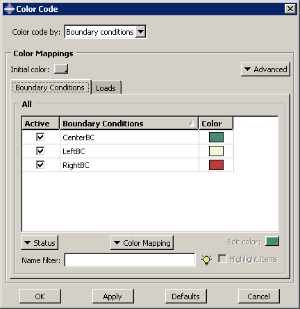 To add another color mapping to the Color Mappings portion of the dialog box, click and select Add Mapping from the list that appears. Abaqus/CAE adds another tabbed color mapping to the dialog box, in which you can display any color mapping by selecting the mapping from the Color Code by list. Figure 1 shows the Color Code dialog box with the Boundary conditions and Loads color mappings displayed. ![]() You can also remove a color mapping from the dialog box by clicking its tab and selecting Remove Current Mapping from the list. When multiple color mappings are open, Abaqus/CAE applies color mappings for the leftmost color mapping first, before proceeding to the mapping or mappings to its right. You can display up to three color mappings at a time, but Abaqus/CAE does not permit you to reorder the tables. If you want to color code attributes in a different order, you must close each color mapping and then add the color mappings in the order in which you want Abaqus/CAE to display them in the viewport. |