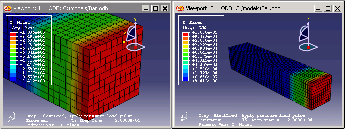 Abaqus/CAE allows only one set of linked viewports, so every viewport in your session is either independent or a part of the group of linked viewports. When you change the view in an independent viewport, Abaqus/CAE changes the view in that viewport only. When using the standard view manipulation tools (see Understanding the view manipulation tools), the manipulations in the linked viewports are not dependent on the view orientation in each viewport. For example, panning the view to the left will pan the view to the left in all linked viewports, regardless of different view orientations in each viewport. When manipulating the view using the 3D compass (see The 3D compass), the manipulations in the linked viewports are dependent on the view orientation in each viewport. For example, panning the view along the X-axis will pan the view along the X-axis in all linked viewports; the view orientation in each viewport determines the direction of motion. You can activate or deactivate viewport linking for your session from the Viewport menu, the Viewport toolbar, or the Linked Viewports Manager. If this option is deactivated, all viewports in your session are independent. By default, if this option is activated, all viewports in your session are linked. In the bottom portion of the Linked Viewports Manager, you can toggle off a viewport's checkbox to exclude it from the group of linked viewports. From the Linked Viewports Manager, you can control which characteristics the linked viewports share. By default, all of the characteristics are shared. Several of the linked viewport options are available in all modules; some of the options, such as displaying the same plot state in all linked viewports, are applicable only in the Visualization module. Abaqus/CAE