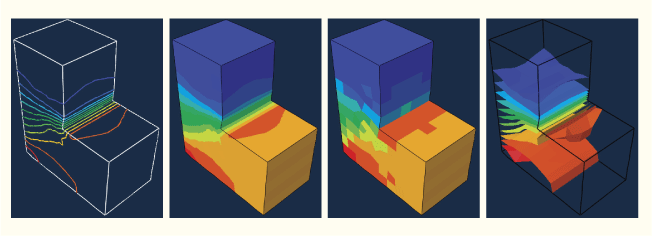 Line, banded, quilt-type, and isosurface contours are shown in Figure 1. ![]() As with other elements, contour lines for line-shaped elements (beams, one-dimensional elements, gasket link elements, and three-dimensional line gasket elements, as well as two-dimensional contact surfaces) are plotted along the elements by default. Line-type contour plots are not recommended for line-shaped elements. Tick mark contour plotting provides an alternative means of visualizing contours on beams and other line-shaped elements. The contour is displayed as a curve plotted between two sets of lines normal to the elements, as shown in Figure 2. The contour level is indicated by “tick marks” on these normal lines. ![]() The key to interpreting a contour plot is the plot legend. The legend indicates the correspondence between contour values and contour colors. By default, Abaqus/CAE evenly divides the difference between the minimum and maximum values in the legend into 12 intervals. You can change the number of intervals if necessary. A color is associated with each interval. For a line-type or isosurface-type contour plot each colored line or surface corresponds to a set of locations in the model for which the field output variable has the value shown in the legend. For a banded contour plot each colored contour band corresponds to a range of values within the bounds indicated by the legend. For a quilt contour plot each colored element face corresponds to a single value within the bounds indicated by the legend for that color. For a tick mark contour plot each colored tick mark corresponds to a single value indicated by the legend. Abaqus/CAE follows a different convention for contour plots of contact status (CSTATUS). This variable describes whether individual nodes on the main and secondary surfaces are in contact and, if so, whether the surfaces are sticking or slipping at that point. Because three settings are available to describe the contact status at each node—sticking, slipping, or open—Abaqus/CAE displays contact status data using three contour intervals and renders the contour plot by coloring the region around a node according to its contact status. The components of connector vector output are resolved with respect to different coordinate systems depending on whether the output requested is field output or history output. See Displaying connectors and connector output in the Visualization module for how to interpret the vector component values in field plots. To learn how to produce a contour plot, see Producing a contour plot. |