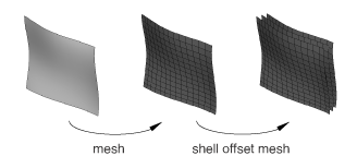 Create layers of shell elements that are offset normal to selected element faces from an existing mesh, as shown in Figure 2.