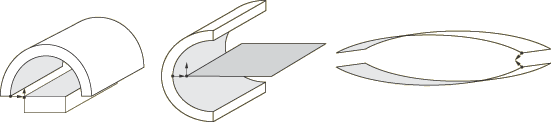 While the contact search algorithm effectively accounts for most appropriate surfaces, it can misinterpret the relationship between a concave surface and a flat surface. Concave surfaces create difficulties because their surface normal orientation can vary widely across the span of a single surface, and the points of closest approach between surfaces is sometimes a poor reference. Consider, for example, the situations in Figure 1.