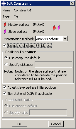 Each constraint editor displays the name and type of the constraint you are defining in the top panel of the dialog box. The format of the rest of the editor varies depending on the type of constraint you are defining. For example, the tie constraint editor is shown in Figure 1. ![]() You can display information on a particular editor feature by selecting Using the constraint editors. from the main menu bar and then clicking the editor feature of interest. For detailed instructions on creating constraints, see |