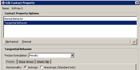 The format of the interaction property editor depends on the type of interaction property you are defining. For example, the film condition and actuator/sensor property editors display data fields in which you can enter all of the information necessary to define the property. The film condition property editor is shown in Figure 1. ![]() The format of the contact property editor, on the other hand, is identical to the material editor in the Property module (see Creating materials, for more information). Like the material editor, the contact property editor contains menus from which you select options to include in the property definition, as shown in Figure 2. ![]() When you select an option from a menu, the name of the option appears in the Contact Property Options list at the top of the editor, and the option becomes part of your interaction property definition. In addition, the option definition area in the lower half of the editor changes to provide fields in which you can specify information for the currently selected option. For example, the Contact Property Options list in Figure 3 reflects that the and options (located in the Mechanical menu) have been included in the property definition. is currently selected, and the related parameters appear in the lower half of the editor. If you want to remove an option from a contact property definition, you can select that option from the Contact Property Options list and then click ![]() You can display help on a particular feature of the editor by selecting Creating interaction properties, and Using the interaction property editors. from the main menu bar and then clicking the feature of interest. For detailed instructions on creating properties, see |