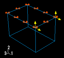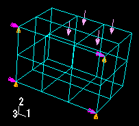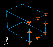 ![]() Figure 2 shows a boundary condition applied to four nodes and a pressure load applied to several element faces of a mesh. ![]() Note: