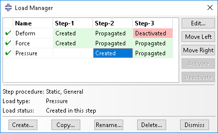 Prescribed condition managers contain alphabetical lists of all the prescribed conditions of a certain type that you have created. For example, the Load Manager shown in Figure 1 contains a list of loads. ![]() The , , , , and buttons in the managers allow you to create new prescribed conditions or to edit, copy, rename, and delete existing ones. You can also initiate the create, edit, copy, rename, and delete procedures by using the , , and menus in the main menu bar. After you select a management operation from the main menu bar, the procedure is exactly the same as if you had clicked the corresponding button inside the manager dialog box.The prescribed condition managers are step-dependent managers, which means that they contain additional information concerning the history of each load, boundary condition, and predefined field in the model. You can use the icons in the column along the left side of the managers to suppress prescribed conditions or to resume previously suppressed prescribed conditions for an analysis. The suppress and resume procedures are also available from the Suppressing and resuming objects. , , and menus in the main menu bar. For more information, seeYou can use the Copying step-dependent objects using manager dialog boxes. button in manager dialog boxes, the corresponding menu command, or the Model Tree to copy a load, boundary condition, or predefined field. You can copy these objects from any step to any valid step, with some restrictions. For more details, seeThe Modifying the history of a step-dependent object. , , , and buttons allow you to manipulate the stepwise history of prescribed conditions. For more information, seeNote: