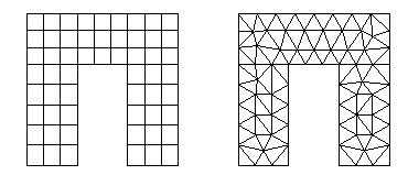 You can select the shape of the mesh elements. For example, Figure 2 shows a model that has been meshed first with quadrilateral elements and then with triangular elements.