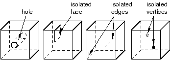 The region cannot have any holes, isolated faces, isolated edges, or isolated vertices. For example, the regions shown in Figure 2 cannot be meshed using the structured meshing technique.