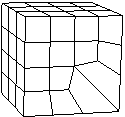 The face pattern shown on the left is unacceptable for structured meshing because each face has only three sides. Each face in the pattern shown on the right has four sides, but the pattern does not allow a regular grid of elements to be created on the partitioned side of the cube, as shown in Figure 10.