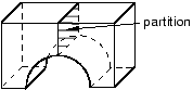 You should limit arcs to 90° or less to avoid concavities along sides and at edges. For example, the part instance in Figure 4 has been partitioned so that the single region with 180° arcs becomes two regions with 90° arcs.