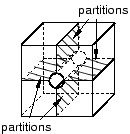 You can eliminate holes (whether they pass all the way through the part instance or just part way through) by partitioning their circumferences into halves, quarters, etc. For example, the four partitions in Figure 3 convert the part instance from one region with a hole to four regions without holes.
