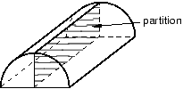 All the faces of the region must have geometries that could be meshed using the two-dimensional structured meshing technique. For example, without partitioning, the semicircles at either end of the part in Figure 5 have only two sides each. (A face must have at least three sides to be meshed using the structured meshing technique.) If you partition the part into two halves, each semicircle is divided into two faces with three sides each.