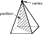 Exactly three edges of the region must meet at each vertex. For example, the vertex at the top of an unpartitioned pyramid in Figure 6 is connected to four edges. However, if you partition the pyramid into two tetrahedral regions, the vertex is connected to only three edges for each individual region.