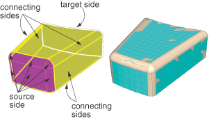 You can apply bottom-up meshing to any solid region, including regions that can be meshed using the top-down techniques, and to meshes that do not have any associated geometry. Since bottom-up meshing is a manual process that can be very time consuming, it is recommended that you use this method only when the top-down methods fail to produce a satisfactory mesh. Generating the desired mesh may require multiple applications of the bottom-up meshing technique. If multiple applications are required, each bottom-up mesh becomes an incremental building block for the next mesh until you complete the mesh for the region. Each application of the bottom-up meshing technique involves four phases: