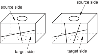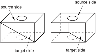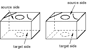 Every side that connects the source side to the target side must have only a single face or be comprised of four-sided combined faces that form a regular grid pattern. Figure 3 provides two examples of acceptable connecting face patterns.