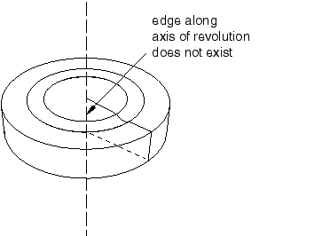 A fully revolved region that does not touch the axis of revolution is meshable only if all the edges that are associated with the profile being revolved exist. However, the edges that bound the profile must not create a face. Figure 11 shows a meshable part instance where all of the edges of the revolved profile exist.