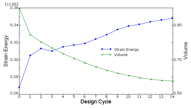 After you combine the separate output database files into a single output database file, each design cycle in the optimization process appears as a frame in the output database, and you can open the Step/Frame dialog box to display the results from each design cycle. You can view the results of an optimization process while it is still in progress. As the optimization process moves toward completion, the lists of completed steps and frames are updated every time you close and reopen the Step/Frame dialog box. For more information, see Selecting a specific results step and frame, and Stepping through frames. You can perform a time history animation of a deformed or contour plot and view the progress of the optimization as Abaqus attempts to satisfy the objective functions while respecting the constraints. For a topology optimization you can view the progressive removal of elements from the analysis and the resulting effect on the mechanical behavior of the model, such as the change in deformation or stress. Turning on translucency allows you to see the progression of the optimization through interior elements; for example, the removal of interior elements to create voids. For more information, see Changing the translucency. For a shape optimization you can view the incremental change in the position of the surface nodes as the optimization progresses; and, similar to a topology optimization, you can view the resulting effect on the mechanical behavior of the model. In addition, the optimization process writes data files (optimization_report.csv and optimization_status_all.csv) to the jobname directory that you can use to track the design variables. For example, you can create an X–Y plot showing how the objective functions and constraints change after each design cycle. The resulting plot indicates how the Optimization module tries to meet the specified objective functions while satisfying the constraints. You can use an X–Y plot of the objective functions and constraints as a diagnostic tool to view the progression of the optimization after each design cycle and to determine if the optimization is converging on a solution, as shown in Figure 1. ![]() You can also view an X–Y plot showing how the objective function and constraints change after each design cycle by monitoring the progress of an optimization process from the optimization process manager. See Monitoring your optimization process, for more information. |