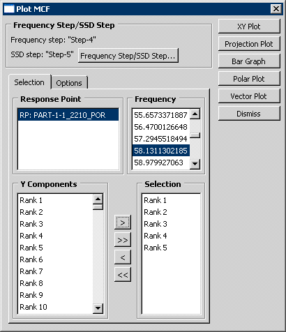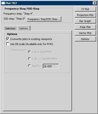 The Selection tabbed page is shown in Figure 2: ![]() Click the Options tab to select the general plot options. In addition, if you select POR-based results, you can select the P Reference value for XY and projection plots. From the buttons on the right side of the Plot MCF dialog box, select the type of plot to create.
