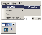 There are two types of plug-ins: kernel and GUI. A kernel plug-in consists of functions written using the Abaqus Scripting Interface. In contrast to a kernel plug-in, a GUI plug-in is written using the Abaqus GUI Toolkit and contains commands that create graphical user interfaces, which in turn send commands to the kernel. Both kernel and GUI plug-ins are available from the menu on the main menu bar or from a plug-ins toolbox. By default, several kernel and GUI example plug-ins are available from the Abaqus/CAE. In addition, you can access two example plug-ins from a plug-ins toolbox. When you select from the main menu bar, Abaqus/CAE displays the Examples toolbox. You can click an icon in the toolbox to start a plug-in. Figure 1 shows the menu and the Examples toolbox. menu on the main menu bar. You can use these examples to see how plug-ins are created and to learn how plug-ins interact with![]() |