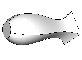 Figure 3. A loft feature with radial tangency at the left end and normal tangency at the right end.