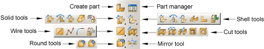 You can access all the Part module tools through either the main menu bar or the Part module toolbox. Figure 1 shows the hidden icons for all the part tools in the Part module toolbox.