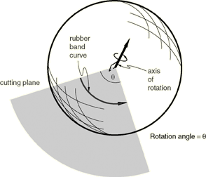 Abaqus/CAE disables the rotate tool when an X–Y plot is displayed in the current viewport. The circle that is drawn when you enter rotate mode represents the silhouette of an imaginary sphere that surrounds the object. When you drag the mouse inside the circle, you might imagine that you are actually rotating the sphere, as you would a trackball. Your model is attached to the center of the sphere, so that rotating the sphere causes your view of the model to rotate as well. You determine the axis of rotation as you move the cursor over the surface of the imaginary sphere. The rubberband line represents the intersection of a cutting plane with the sphere's surface, and the rotation axis is normal to this cutting plane. The angle of rotation is equal to the angle made by the rubberband line on the sphere's surface, so that dragging all the way across the circle produces a 180° rotation. Figure 1 illustrates the imaginary sphere and a rubberband line being dragged across its surface. ![]() When you drag outside the circle, the rubberband line is superimposed on the edge of the circle, and your view of the object simply rotates about an axis normal to the screen and passing through the center of the circle. In the same way as it does for dragging inside the circle, the rubberband line represents the angle through which the object has rotated. Using the default mode of view rotation is comparable to rotating the camera around the view center or selected center of rotation, as shown in Figure 2. ![]() The alternate mode of the rotate tool, accessed by holding Shift while performing the manipulation, rotates the camera about itself, as shown in Figure 3. This moves the camera target and frustum without regard to the position of objects in the original view. Rotating the camera about itself is most useful when you are in movie mode and the camera is positioned inside the model. In this position, moving the camera target and frustum brings different portions of the interior of the model into view. ![]() Note: