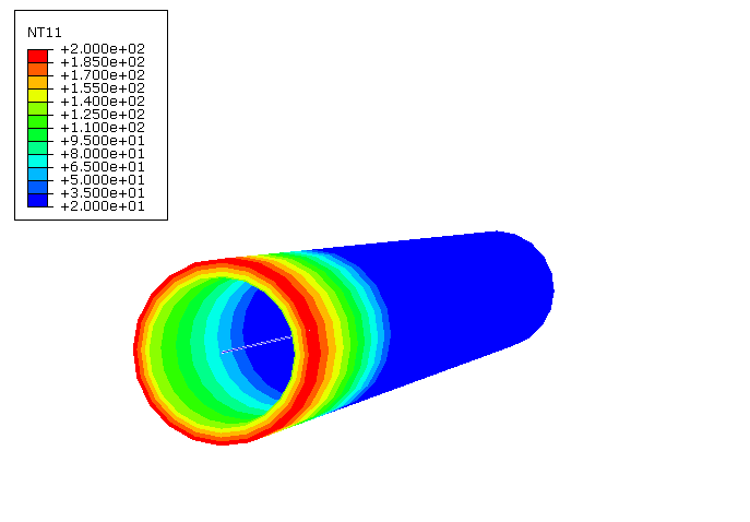 shows the nodal temperature (NT11) on the inner wall and outer wall of a fluid pipe.