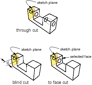 Context: You create an extruded cut into a three-dimensional part by sketching the two-dimensional cross-section of the cut on a selected face and defining the distance through which Abaqus/CAE extrudes the cut. You can select one of the following methods to define the distance through which the cut is extruded: