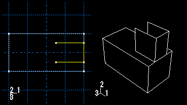 Context: You add an extruded shell feature by sketching on a selected face and extending the profile a specified distance in a direction normal to the face. A sketch and the resulting extruded shell feature are illustrated in the following figure: You can also define the distance over which to extrude by selecting a single face to extrude to. Abaqus/CAE extrudes the sketch until it meets the selected face. In addition, you can select a center point and specify a pitch that Abaqus/CAE uses to twist the cross-section as it is extruded. Alternatively, Abaqus/CAE can expand or contract the cross-section along a specified draft angle as the cross-section is extruded. For more information, see Including twist in an extrusion, and Including draft in an extrusion. |
