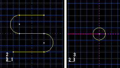 The sweep path, the sweep profile, and the resulting solid feature are illustrated in the following figures: The sketch or set of edges specifying the sweep path and the sketch or face specifying the sweep profile define the swept solid feature; both the sweep path and the sweep profile can be modified using the Feature Manipulation toolset if you define them using the Sketcher. You can also create a swept solid whose sweep profile is offset from the sweep path. In this case Abaqus/CAE moves the sweep path to a parallel location that passes through the sweep profile and creates the swept solid at that location. As you define your sweep feature, you can apply a twist or draft to it. For more information about these tools, see What types of features can you create?. You can toggle on Keep profile normal constant to maintain the same orientation for the sweep profile as it travels along the sweep path; if this option is toggled off, the sweep profile orientation changes with the normal to the sweep path. In addition, you can toggle on Keep internal boundaries in the Feature Manipulation toolset to maintain any faces or edges that are generated between the swept solid feature and the existing part. The internal boundaries may create regions that can be structured or swept meshed without having to resort to partitioning. |