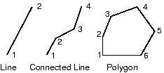 The following figure shows how you draw lines, connected lines, and