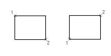 To draw a rectangle, click at any two opposite corners as indicated by the numbering in the following figure.