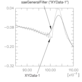 Use one of the SAE filtering functions to apply an SAE filtering operation to a previously savedX–Y data object (a collection of ordered pairs) to produce a new X–Y data object. For example, you can use these functions to remove high-frequency noise.