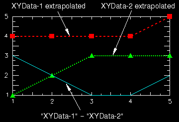 This method yields a new X–Y data object having as its X-coordinates all X-coordinates of the first data object and any additional X-coordinates needed for alignment of the two objects. Abaqus/CAE computes additional X–Y data pairs by interpolation and extrapolation. The new data object has as its Y-coordinates the Y-coordinates of the second data object subtracted from the Y-coordinates of the first data object. For example, let