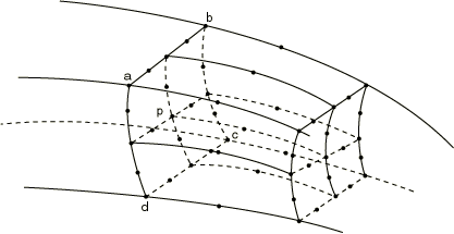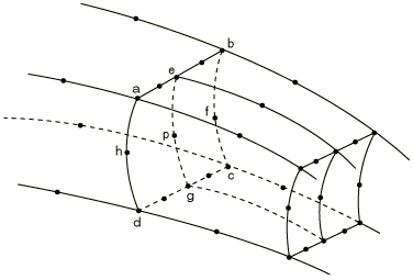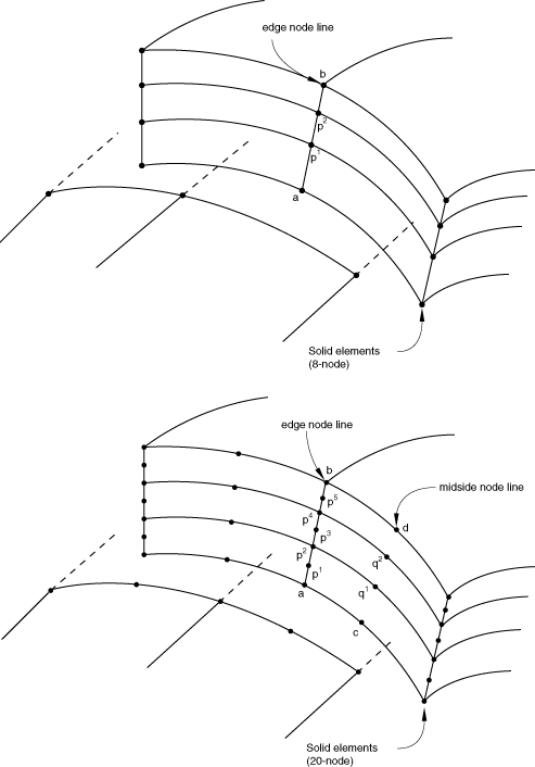 corresponding line through the thickness in the solid element mesh. Referring to Figure 20, give S, , ,…, . The shell node number must be different from the solid mesh node