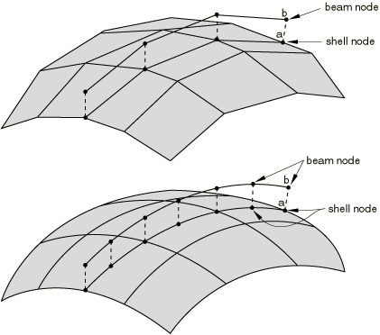 corresponding line through the thickness in the solid element mesh. In Abaqus/Explicit only two solid nodes can be given. Referring to Figure 19, in Abaqus/Standard give S, , , …, , and in Abaqus/Explicit give S, , , where . The shell node number must be different from the solid mesh node