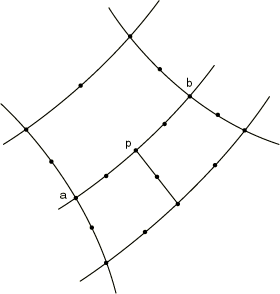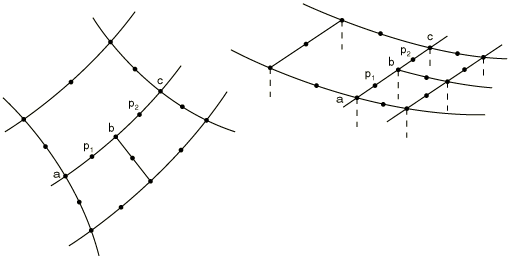 of intersection of the meshes, so that the lines of nodes on the solid mesh side of the