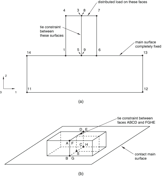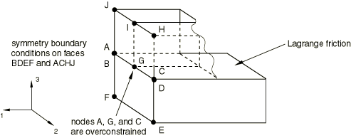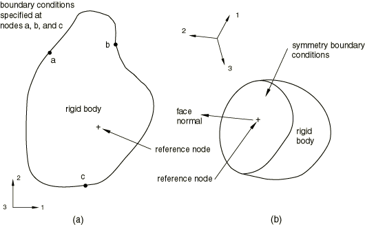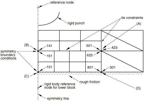 body constraint. The rigid block's reference node is fixed. Symmetry boundary